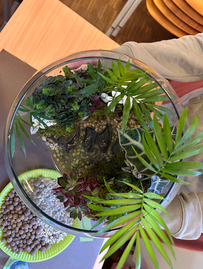 Ein weiteres Projekt beschäftigte sich mit der Gestaltung eines Mini-Terrariums beziehungsweise Florariums. Aus Steinen und Pflanzen wurde ein kleines, in sich stimmiges Ökosystem geschaffen, das mithilfe von Epoxidharz dauerhaft eingefasst wurde. Dieses Projekt vereinte naturkundliches Interesse mit gestalterischem Anspruch und technischem Verständnis und zeigte eindrucksvoll, wie vielfältig die Herangehensweisen sein können.